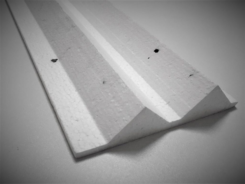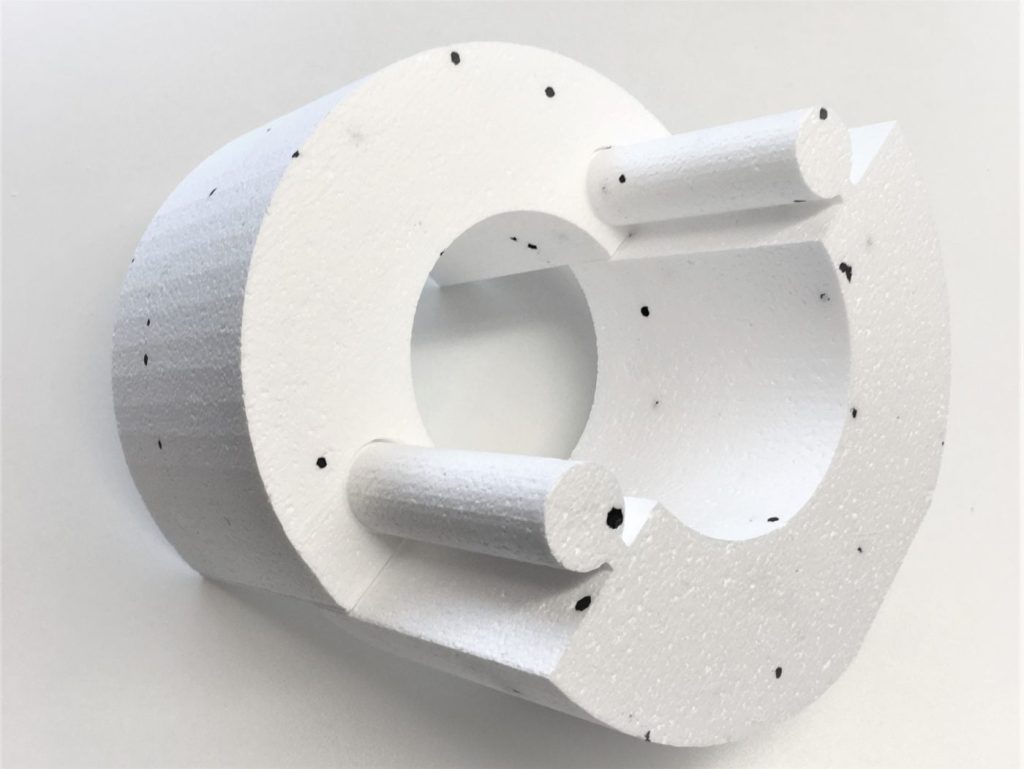 As the material consists of 98% air and only 2% polystyrene, it weighs very little and the high air content makes the foam a highly insulating and shock-absorbing material. The material is also airtight, hygienic, moisture repellent, flexible and mouldable.