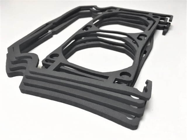 Due to its flexible nature, the foam is easy to customize to precise dimensions, including the use of water jet cutting for accurate and repeatable cuts.