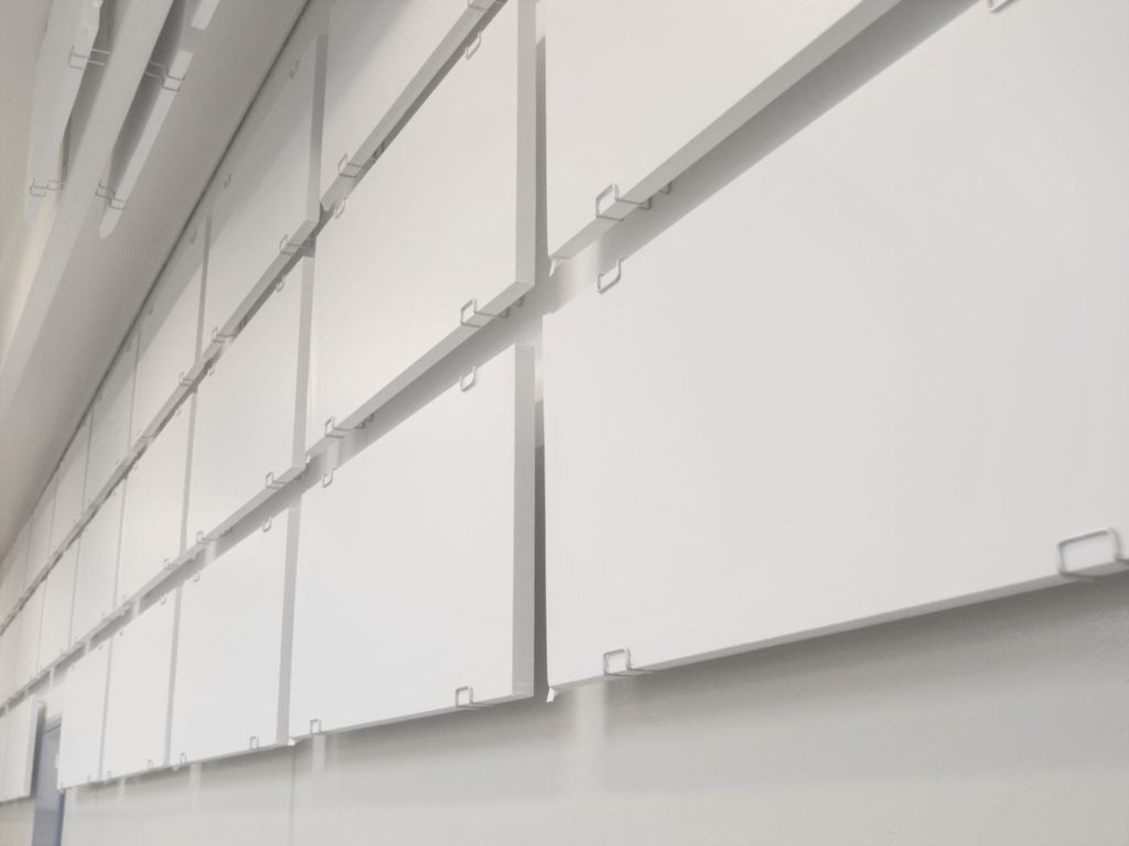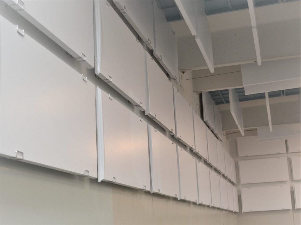 If the need for a sterile production environment is not present, we also recommend our acoustic flat panels that can be mounted directly to walls and ceilings, either mechanically or by gluing them up.