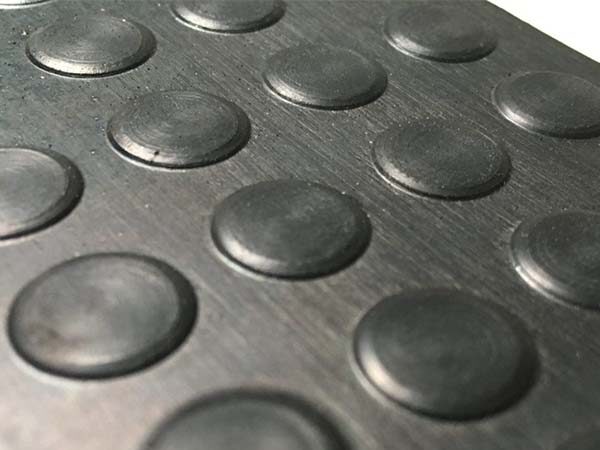 Stud-patterned rubber mats made from robust NBR or SBR rubber. Ideal for areas where extra grip, comfort, noise reduction, and vibration damping are essential. This pattern has a more matte finish compared to our checker mats.