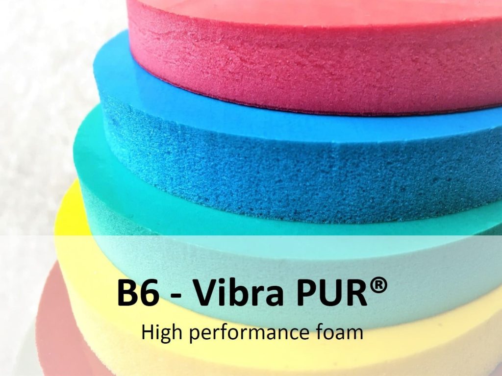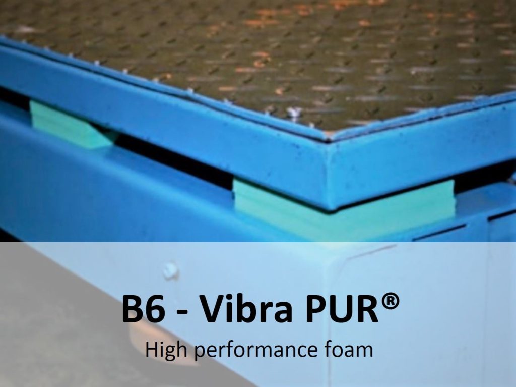 B6 VIBRA PUR has excellent proven properties, and works at both high and low frequencies, while retaining its elasticity excellently. B6 VIBRA PUR is available in 13 different variants, and can withstand loads from 0.010 - 1.9 N/mm² (MPa).